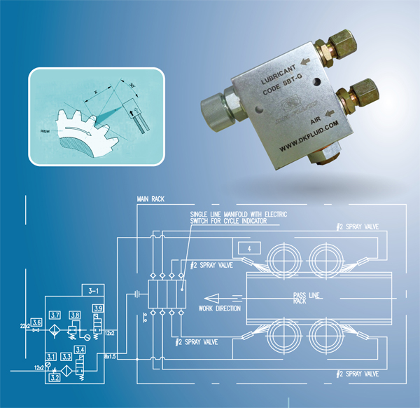 干油噴射裝置特別適用于冶金、礦山、水泥、化工、造紙等行業(yè)的大型開(kāi)式齒輪(如球磨機(jī)、回轉(zhuǎn)窯、挖掘機(jī)、高爐布料器等)以及鋼絲繩、鏈條的潤(rùn)滑。我們可以根據(jù)不同的工作狀態(tài)對(duì)噴嘴安裝在不同的位置。